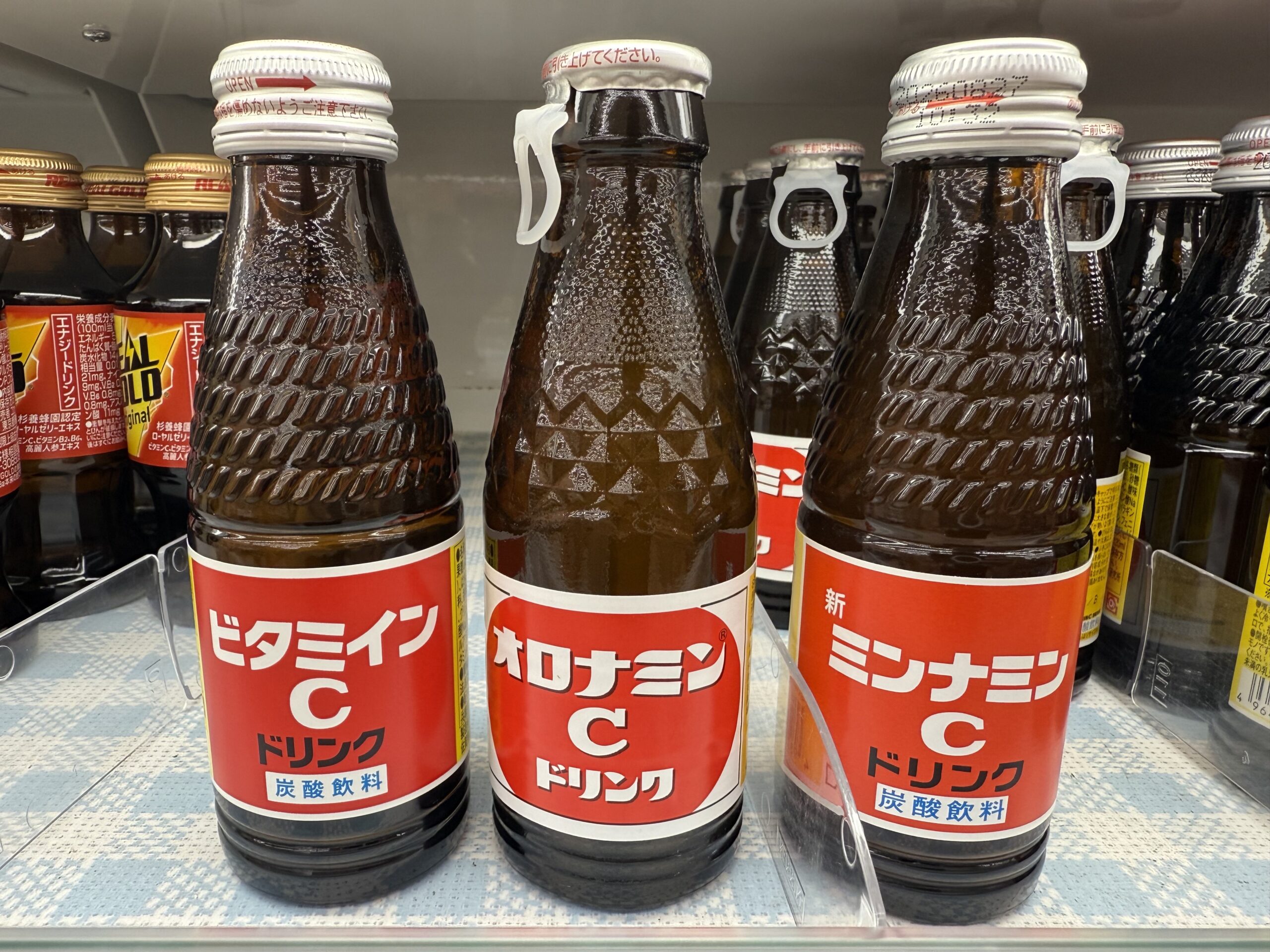 左から「ビタミインC」、「オロナミンC」、「ミンナミンC」